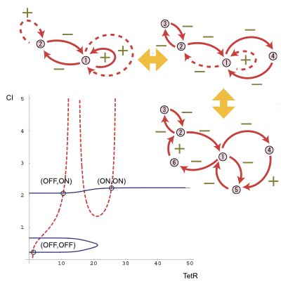 Delay is another ubiquitous phenomenon in intracellular networks, which can drastically change the stability of the networks depending on their structures. We clarified that the asympototic behaviours of genetic networks only consisting of positive feedback loops cannot be altered by any delay in the network, which provides a sufficient condition to construct stable genetic switches. We also proposed a method to design stable synthetic switche by extending a simple abstract network with required stability to more complicated networks (Learn more).