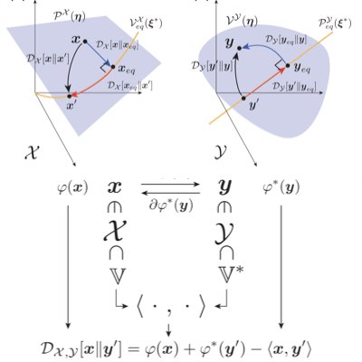 Most chemical reaction systems in living organisms are nonequilibrium. Their nonequilibrium nature is indespensable for producing a variety of biological functions. However, the theory of non-equilibrium reaction networks is not yet well established. We have found that information (Hesse) geometry also plays an essential role in non-equilibrium reaction systems. We are developing a geometric theory of reaction thermodynamics that connects both equilibrium and nonequilibrium chemical thermodynamics (Learn more).