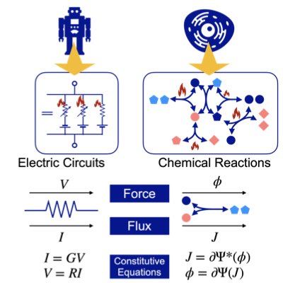 Intracellular reactions composed of a variety of different molecules and reactions has intrinsic algebraic (circuit) structures. They also operate stochastically, because of the small copy numbers of individual molecules. Theory of chemical reaction networks are indespensable for understanding how robust cellular functions emerge from these diverse yet rare molecues (Learn more: [1], [2]).